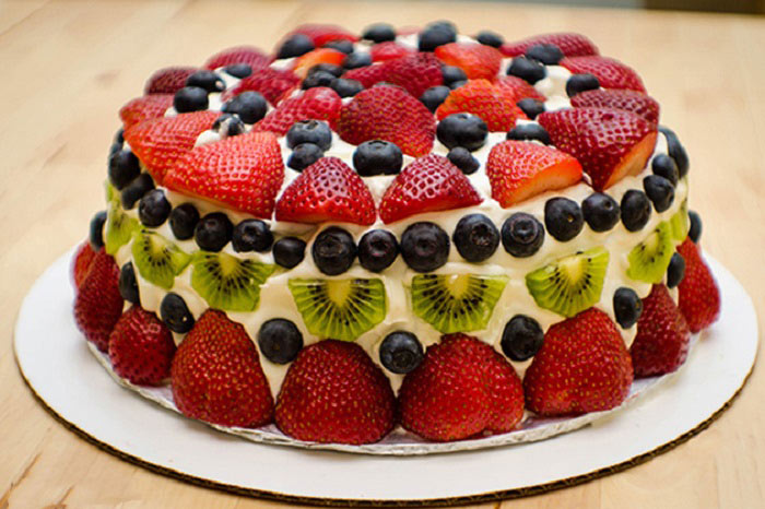 Bánh kem được trang trí với nhiều loại trái cây màu sắc khác nhau