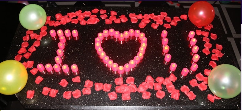 Xếp nến chữ MARRY ME kết hợp bông hồng