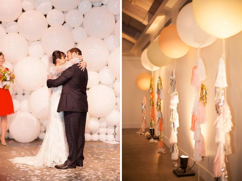 Không chỉ có giá thành cực rẻ, mà cách trang trí bằng bóng còn đem lại cảm giác vô cùng mộng mơ, tươi sáng. Bạn hoàn toàn có thể chọn những trái bóng có cùng tone màu với lễ cưới của bạn để tạo nên một tổng thể hài hòa. Nhưng đôi khi sử dụng màu sắc nổi trội hơn cũng là một ý hay.