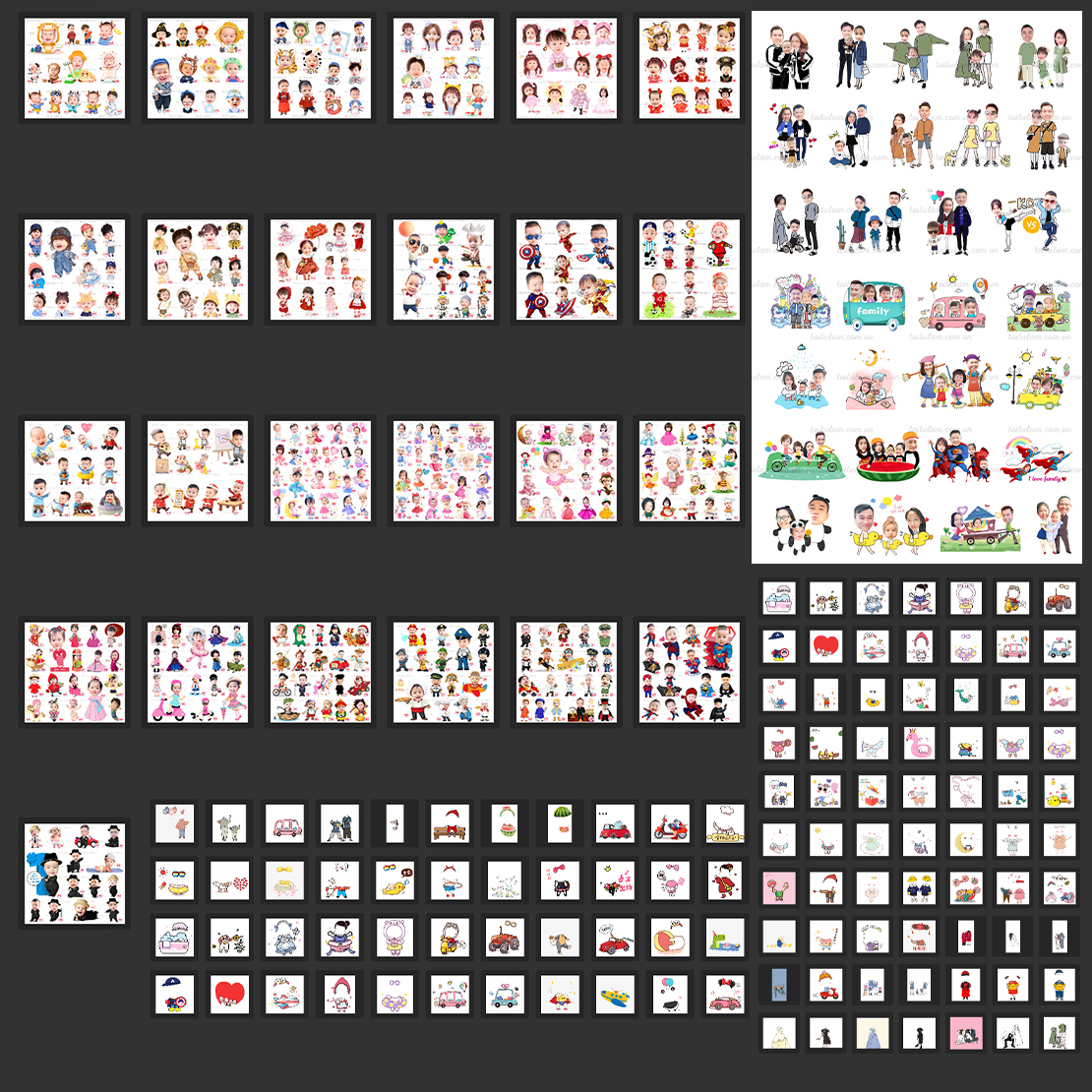 Phần thân Chibi lựa chọn thiết kế theo hình ảnh của các nhân vật (Ví dụ: Bé gái là hình công chúa, thiên thần, bé trai là siêu nhân, lính cứu hoả)