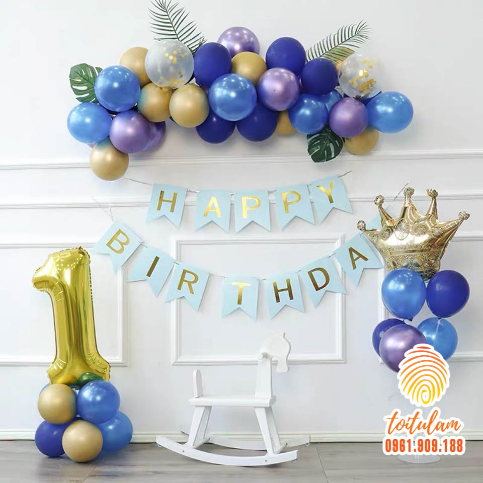 Set dây chữ Happy Birthday tone màu xanh chủ đạo với nhiều phụ kiện sinh nhật bao gồm: Dây chữ Happy Birthday cao cấp, hình các con thú đáng yêu, những ngôi sao lấp lánh, bông hoa, bóng bay sắc màu.