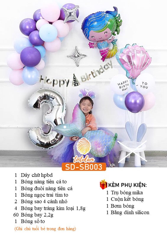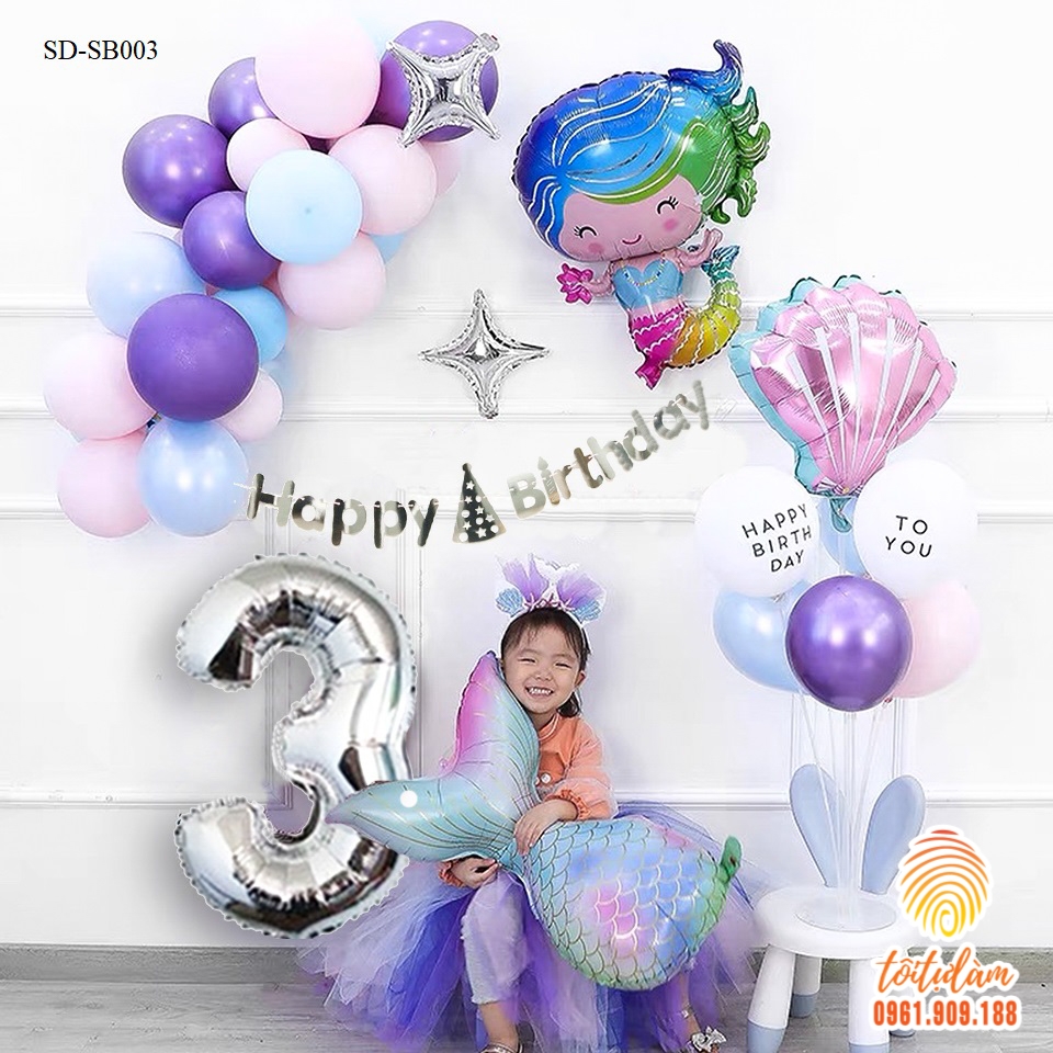 SET BÓNG TRANG TRÍ SINH NHẬT BÉ GÁI CHỦ ĐỀ NÀNG TIÊN CÁ SD-SB003