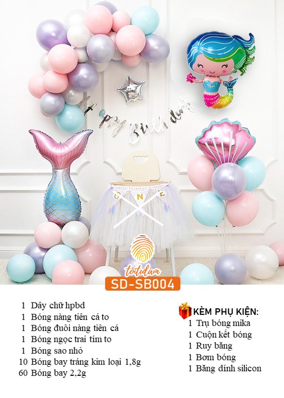 SET BÓNG TRANG TRÍ SINH NHẬT BÉ GÁI CHỦ ĐỀ NÀNG TIÊN CÁ SD-SB004