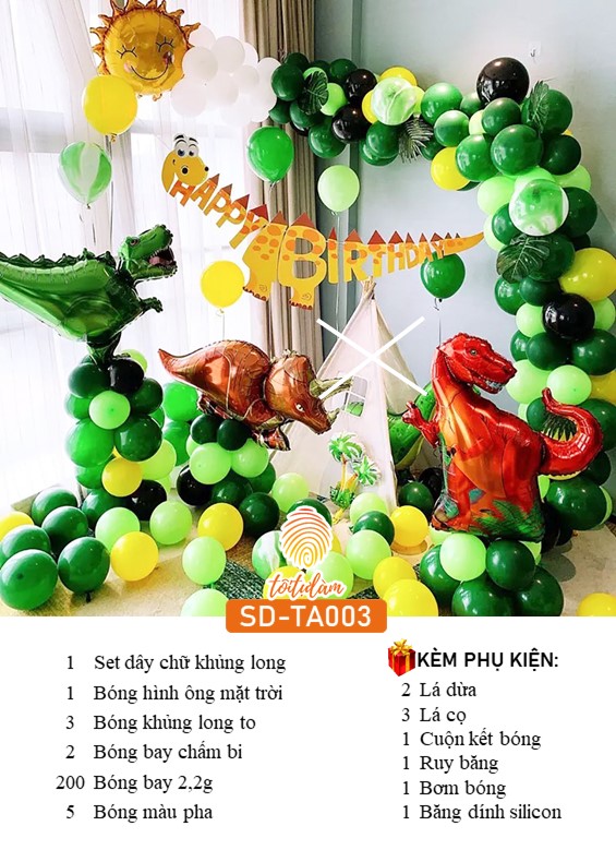 SET BÓNG TRANG TRÍ SINH NHẬT BÉ TRAI CHỦ ĐỀ KHỦNG LONG SD-TA003