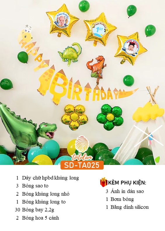 SET BÓNG TRANG TRÍ SINH NHẬT BÉ TRAI CHỦ ĐỀ KHỦNG LONG SD-TA025