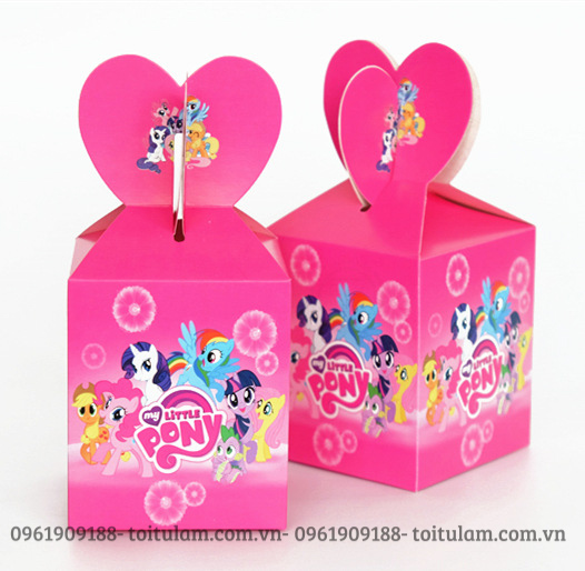 Hộp đựng qu à được làm bằng bìa cát tông gọn nhẹ để các bé có thể dễ dàng cầm tay. Không những thế, còn có thể đựng rất nhiều bánh kẹo và hoa quả hcặc món quà ý nghĩa dành tặng cho các bé khi tan tiệc.