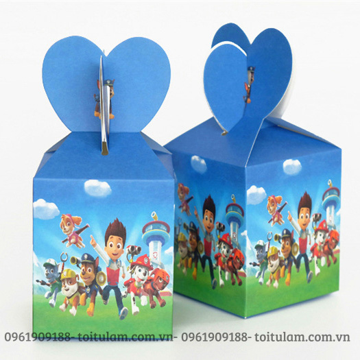 Hộp đựng qu à được làm bằng bìa cát tông gọn nhẹ để các bé có thể dễ dàng cầm tay. Không những thế, còn có thể đựng rất nhiều bánh kẹo và hoa quả hcặc món quà  ý nghĩa dành tặng cho các bé khi tan tiệc.