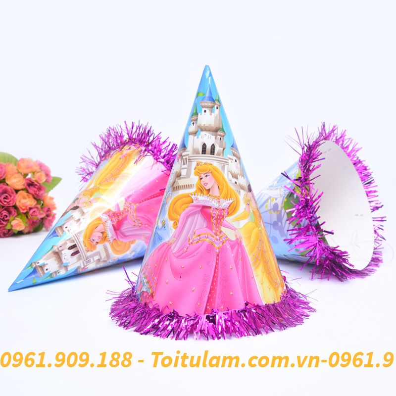 Mũ sinh nhật dành cho bé & các bạn đội trong các bữa tiệc, dịp lễ. Giúp không gian trở nên sinh động, đáng nhớ & những bức hình đẹp. Mũ bằng bìa cứng có quai bằng chun đeo phù hợp cho tất cả các bé. Các bé nhà bạn sẽ thích mê với những chiếc mũ giấy (nón chóp) nhiều hình ngộ nghĩnh. Buổi sinh nhật thêm rộn ràng niềm vui và hạnh phúc