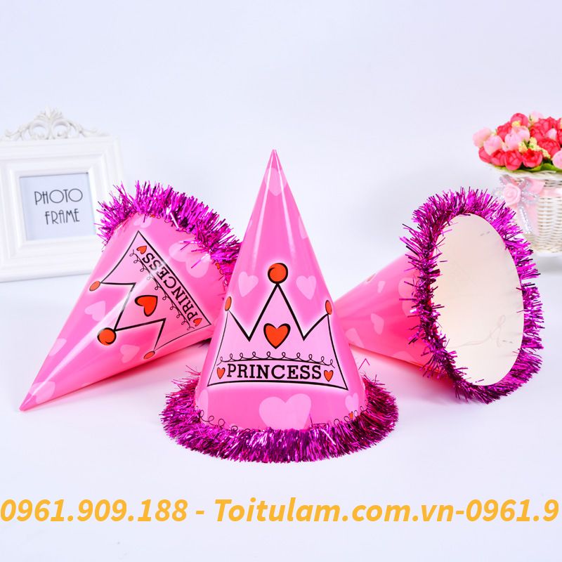 Mũ sinh nhật dành cho bé & các bạn đội trong các bữa tiệc, dịp lễ. Giúp không gian trở nên sinh động, đáng nhớ & những bức hình đẹp. Mũ bằng bìa cứng có quai bằng chun đeo phù hợp cho tất cả các bé. Các bé nhà bạn sẽ thích mê với những chiếc mũ giấy (nón chóp) nhiều hình ngộ nghĩnh. Buổi sinh nhật thêm rộn ràng niềm vui và hạnh phúc
