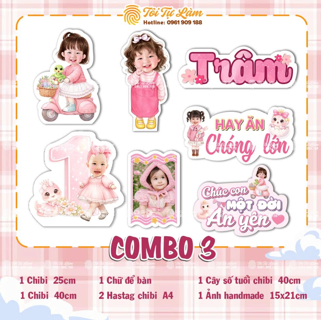 Là một trong các shop làm chibi tại Việt Nam đầu tiên, Tôi Tự Làm luôn mang đến sản phẩm chất lượng và đẹp nhất cho Quý Khách hàng. Rất nhiều mẫu chibi cho mẹ lựa chọn để phù hợp với không gian tiệc sinh nhật.