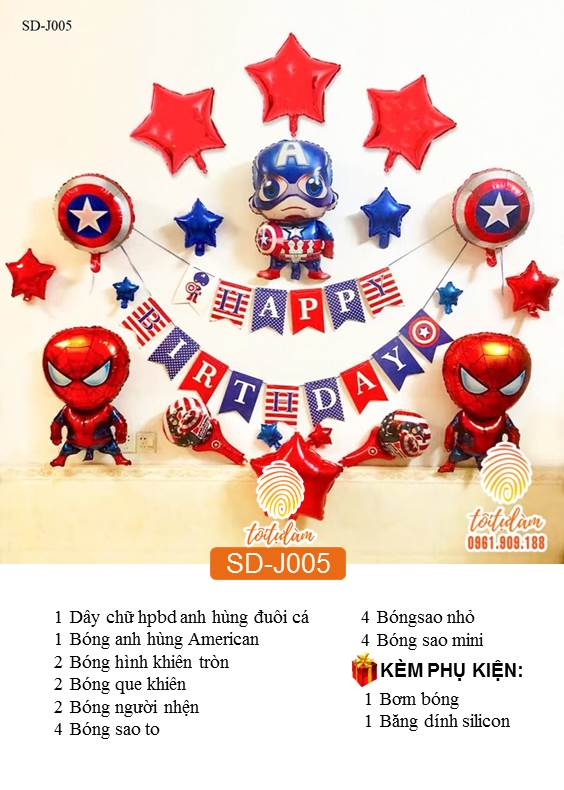 SET BÓNG TRANG TRÍ SINH NHẬT BÉ TRAI CHỦ ĐỀ SIÊU NHÂN, ANH HÙNG SD-J005
