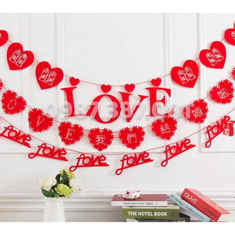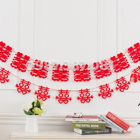 Dây hỷ đám cưới tại Toitulam làm bằng mếch hoặc nhựa và có nhiều thiết kế hiện đại độc đáo, phù hợp để treo trần, treo tường.