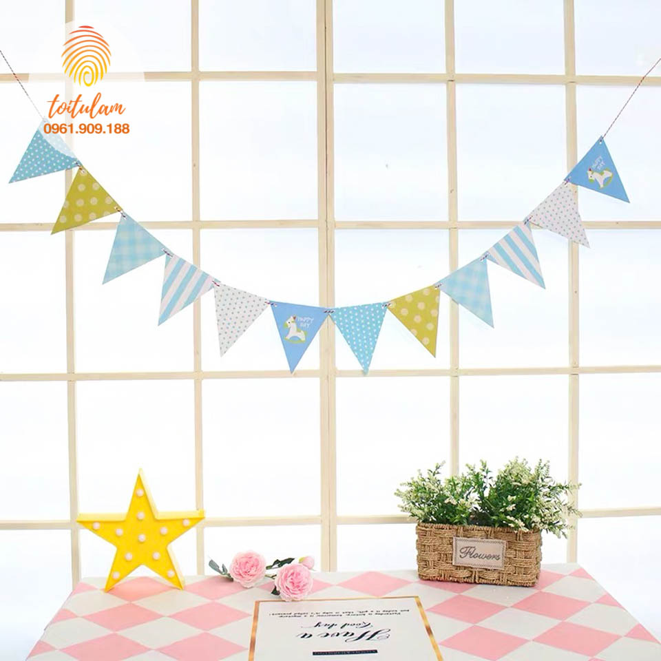 Dây cờ sinh nhật, dây chữ Happy Birthday, dây treo sinh nhật, dây chữ tên bé,... trang trí nổi bật, đẹp với nhiều màu sắc bắt mắt, càng làm cho bữa tiệc của bé thêm sôi động và ý nghĩa