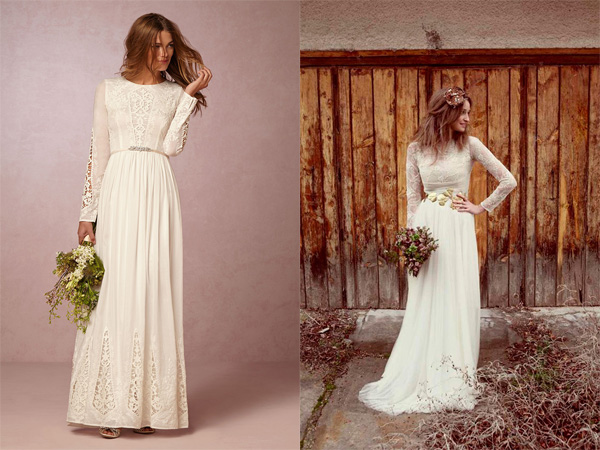 Nếu bạn đang tìm kiếm váy cưới maxi dáng dài vừa có nét bồng bềnh của voan, vừa có sự sang trọng và tinh tế của ren. Thì váy maxi cũng có thể thỏa mãn yêu cầu này của bạn với phần chân váy bằng vải voan, tay áo bằng ren và kết hợp với một vài hạt cườm. Phối thêm một đôi dày cao gót lóng lánh, bạn sẽ là cô dâu tỏa sáng nhất đêm hè trong bộ váy đáng yêu này.