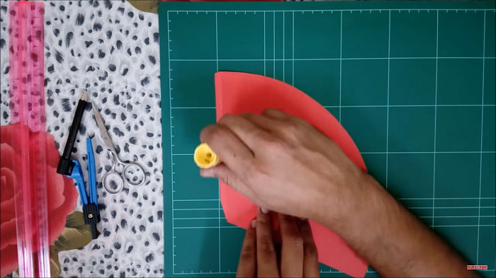 Bước 6: Tiếp tục cuộn chúng lại và dán keo để cố định rồi gập chúng lại để xòe ra tạo kiểu.