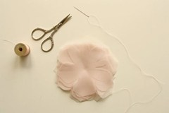 Bước 3: Lấy các cánh hoa đã cắt xếp lại với nhau, bạn cũng có thể xếp xen kẽ cánh hoa của từng loại vải để ấn tượng hơn. Sử dụng kim chỉ để may chúng lại với nhau ở trung tâm của bông hoa.