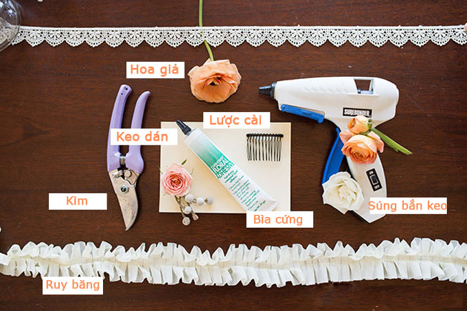 Dưới đây là các bước chi tiết để làm một chiếc lược cài tóc cho cô dâu: