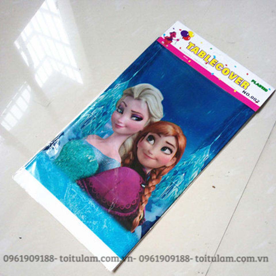 Với chất liệu bằng nilon, rất dễ dàng trong việc làm sạch và tái sử dụng, kích thước dài 1m8, ngang 1m3, với rất nhiều mẫu là họa tiết chấm bi, hình theo chủ đề, khăn trải bàn trơn, bao gồm các màu trắng, xanh dương, xanh lá cây, hồng,...rất nhiều màu để các bố, các mẹ lựa chọn cho phù hợp với chủ đề của bữa tiệc và sở thích của các bé.