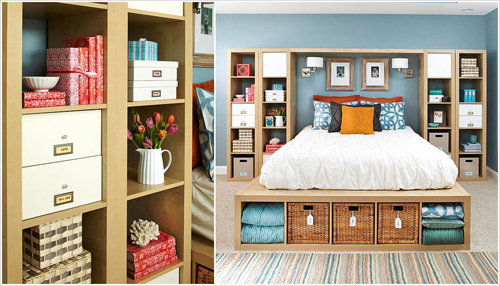 Một chiếc giá nhỏ bên cạnh giường sẽ thay thế hoàn hảo cho chiếc bàn thường thấy nơi đầu giường. Những chiếc hộp nhựa hay giỏ mây tre được sắm thêm để cất trữ, sắp xếp những vật dụng nhỏ dễ bị thất lạc, cũng là cách tuyệt vời giúp căn phòng nghỉ ngơi luôn gọn gàng.