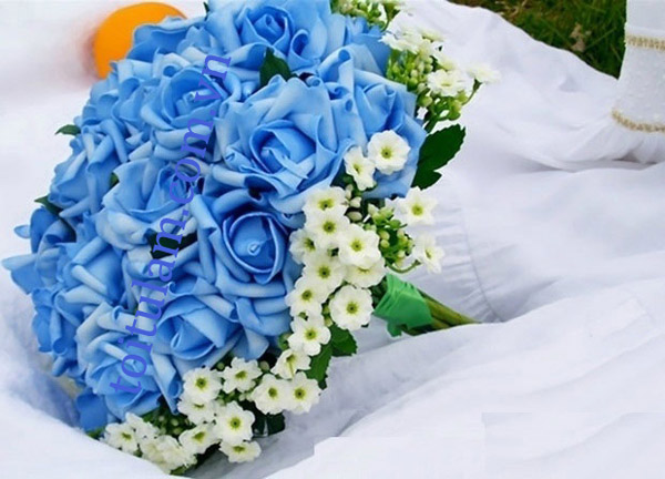Bạn muốn cuộc sống hôn nhân của mình sau này yên bình và hạnh phúc, thì hãy lựa chọn cho mình một bó hoa cưới cầm tay màu xanh dương. Vì màu xanh dương mang ý nghĩa yên bình , hạnh phúc và may mắn và một sự khởi đầu mới.