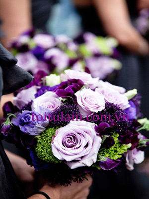 Màu tím là màu đặc trưng cho những cô nàng mộng mơ, bay bổng và bó hoa cưới màu tím thể hiện sự sang trọng, cao quý và tượng trưng cho tình yêu chân thành, chung thủy và vĩnh cửu. Bạn chọn bó hoa cưới cầm tay màu tím, đích thực bạn là người coi trọng tình yêu, và luôn cầu toàn người ấy chung thủy một lòng với bạn. Hãy tạo ra sự mới lạ và ấn tượng trong màu sắc hoa cưới và phông màu chính trang trí đám cưới bởi màu tím nhé.