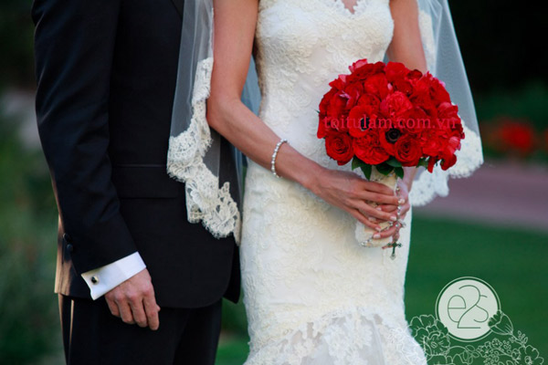 Hoa cầm tay cô dâu màu đỏ, ngọt ngào và lãng mạn