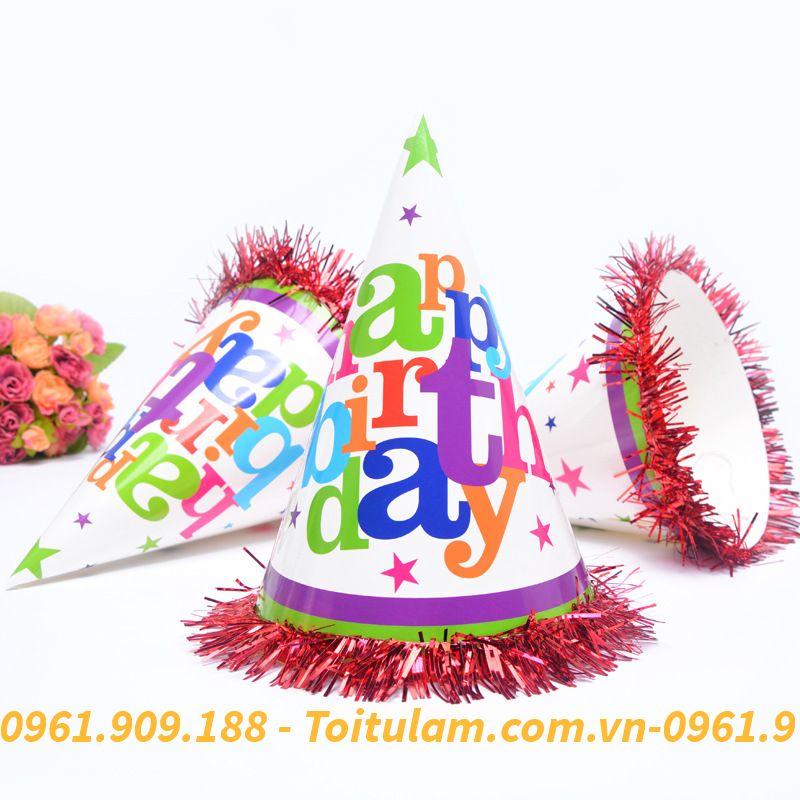 Mũ sinh nhật dành cho bé & các bạn đội trong các bữa tiệc, dịp lễ. Giúp không gian trở nên sinh động, đáng nhớ & những bức hình đẹp. Mũ bằng bìa cứng có quai bằng chun đeo phù hợp cho tất cả các bé. Các bé nhà bạn sẽ thích mê với những chiếc mũ giấy (nón chóp) nhiều hình ngộ nghĩnh. Buổi sinh nhật thêm rộn ràng niềm vui và hạnh phúc