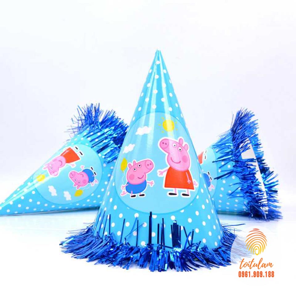 Mũ sinh nhật dành cho bé & các bạn đội trong các bữa tiệc, dịp lễ. Giúp không gian trở nên sinh động, đáng nhớ & những bức hình đẹp. Mũ bằng bìa cứng có quai bằng chun đeo phù hợp cho tất cả các bé. Các bé nhà bạn sẽ thích mê với những chiếc mũ giấy (nón chóp) nhiều hình ngộ nghĩnh. Buổi sinh nhật thêm rộn ràng niềm vui và hạnh phúc