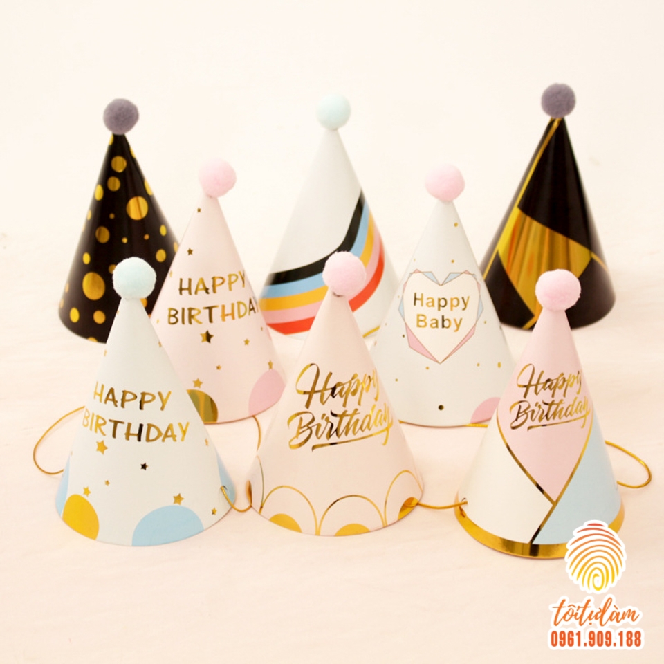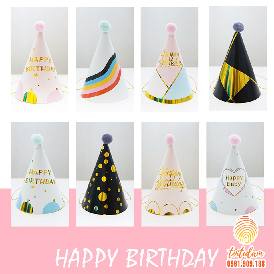 Mũ sinh nhật là một phụ kiện sinh nhật không thể thiếu trong bữa tiệc sinh nhật. Với hình thù ngộ nghĩnh, mũ sinh nhật khiến cho bàn tiệc trở nên độc đáo, mới lạ hơn