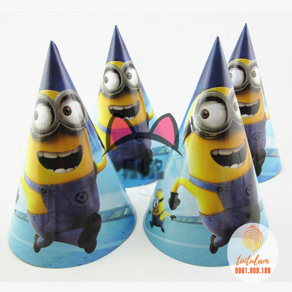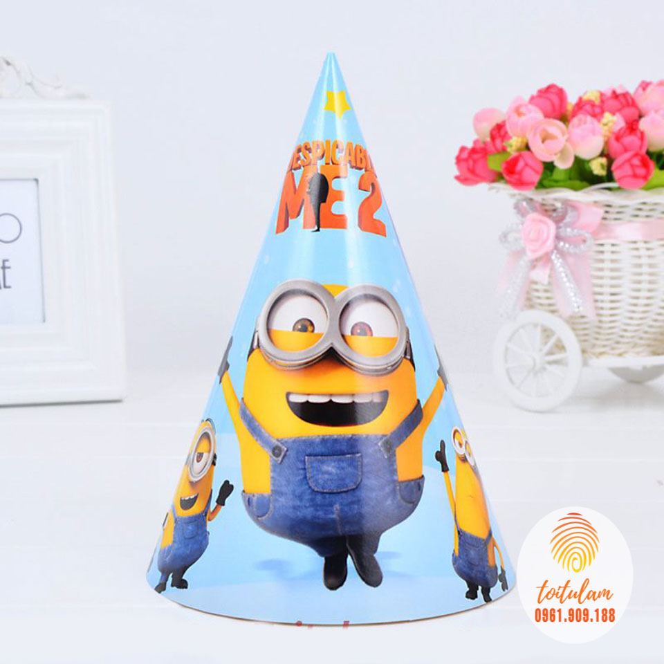 Mũ bằng bìa cứng có quai bằng chun đeo phù hợp cho tất cả các bé. Các bé nhà bạn sẽ thích mê với những chiếc mũ giấy (nón chóp) nhiều hình ngộ nghĩnh. Buổi sinh nhật thêm rộn ràng niềm vui và hạnh phúc