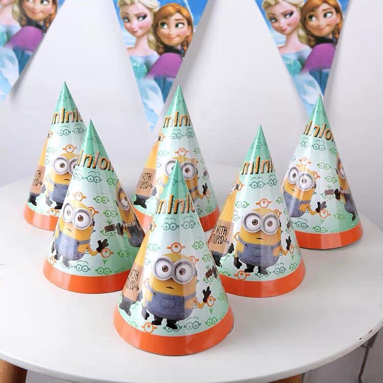 Trong số những món đồ dùng trang trí cho các bữa tiệc thì những chiếc mũ sinh nhật có in hình hoa, hoạ tiết kẻ sọc, chấm bi hay các nhân vật hoạt hình cũng là phụ kiện không thể thiếu
