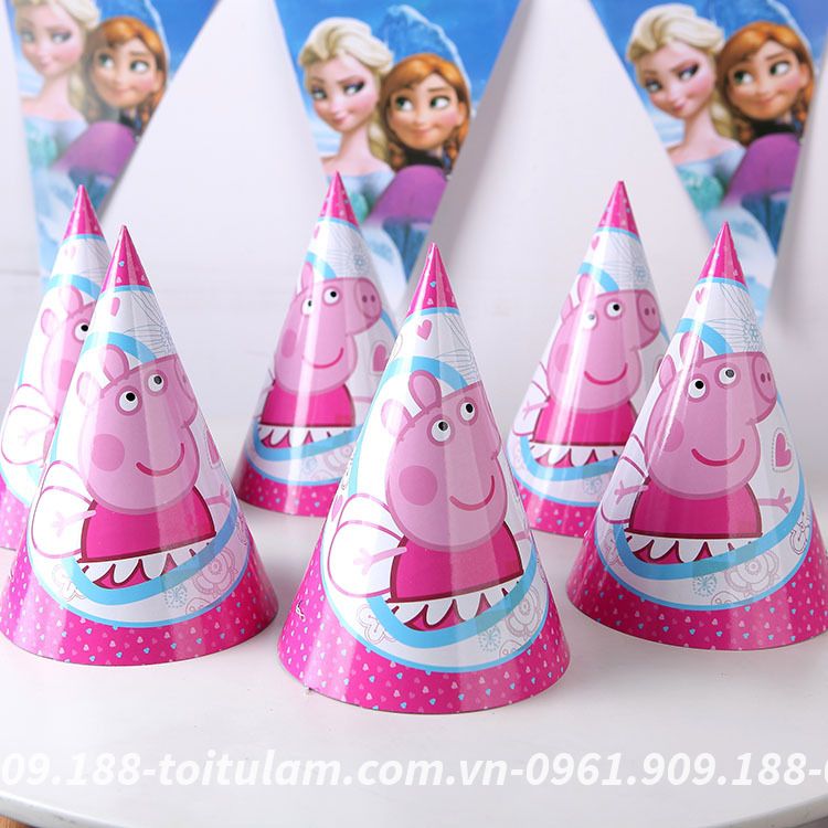 Mũ bằng bìa cứng có quai bằng chun đeo phù hợp cho tất cả các bé. Các bé nhà bạn sẽ thích mê với những chiếc mũ giấy (nón chóp) nhiều hình ngộ nghĩnh. Buổi sinh nhật thêm rộn ràng niềm vui và hạnh phúc