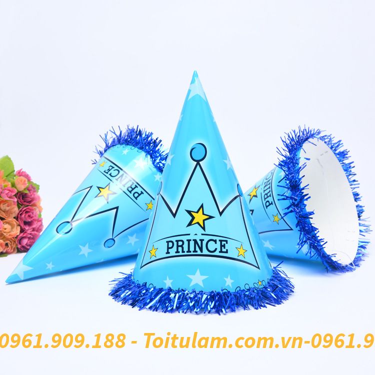 Mũ sinh nhật dành cho bé & các bạn đội trong các bữa tiệc, dịp lễ. Giúp không gian trở nên sinh động, đáng nhớ & những bức hình đẹp. Mũ bằng bìa cứng có quai bằng chun đeo phù hợp cho tất cả các bé. Các bé nhà bạn sẽ thích mê với những chiếc mũ giấy (nón chóp) nhiều hình ngộ nghĩnh. Buổi sinh nhật thêm rộn ràng niềm vui và hạnh phúc