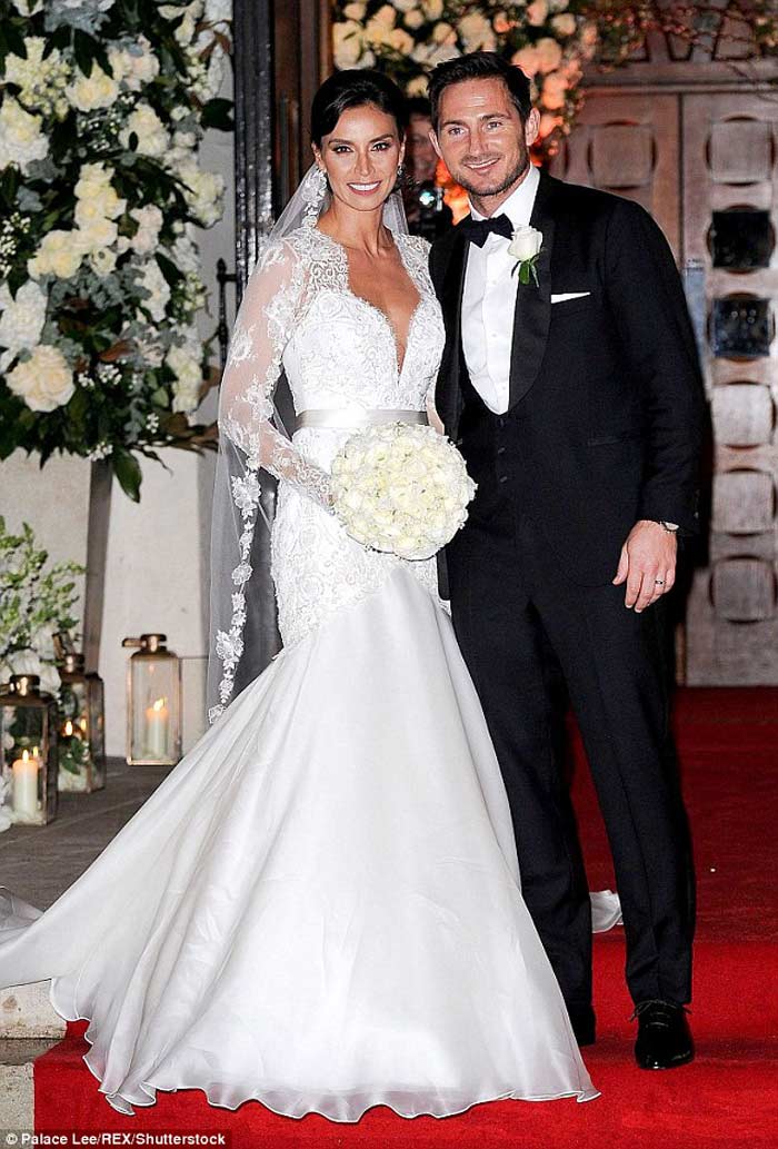 Christine đẹp kiểu cách với bộ váy cưới hơn 10.000 bảng của NTK Suzanne Neville trong hôn lễ với danh thủ Frank Lampard năm 2015