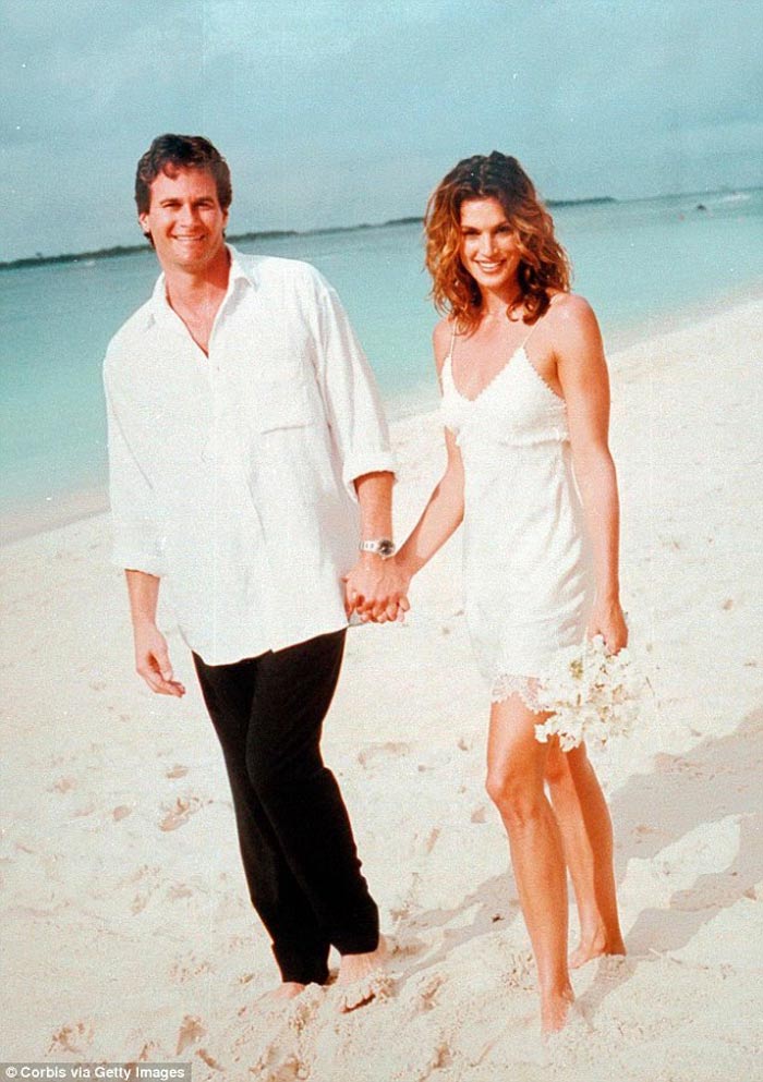 Cindy Crawford quá đẹp và cô chỉ cần 1 chiếc váy đơn giản như thế này trong hôn lễ 1998. Váy của NTK John Gallinano.