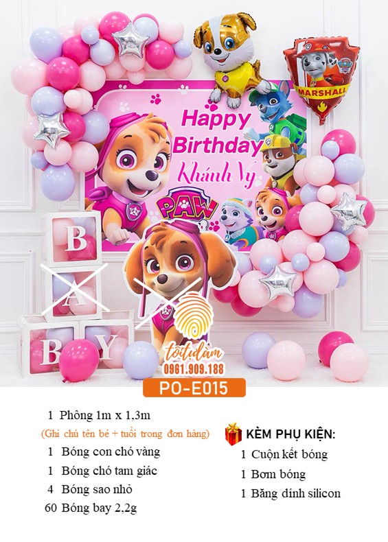 Với phông sinh nhật chủ đề Biệt đội chó cứu hộ đáng yêu này, Tôi tự làm mong muốn được cùng ba mẹ tạo nên mỗi khoảnh khắc đáng nhớ trong cuộc đời của con !