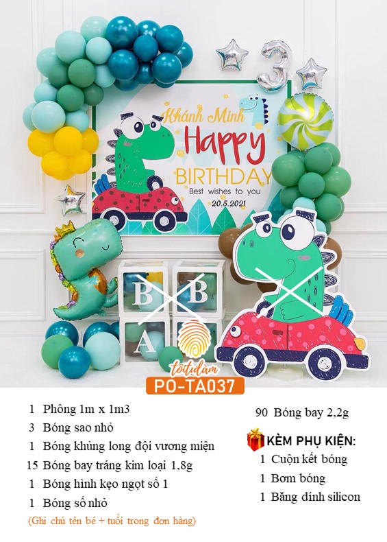 SET BÓNG TRANG TRÍ SINH NHẬT BÉ TRAI CHỦ ĐỀ KHỦNG LONG PO-TA037
