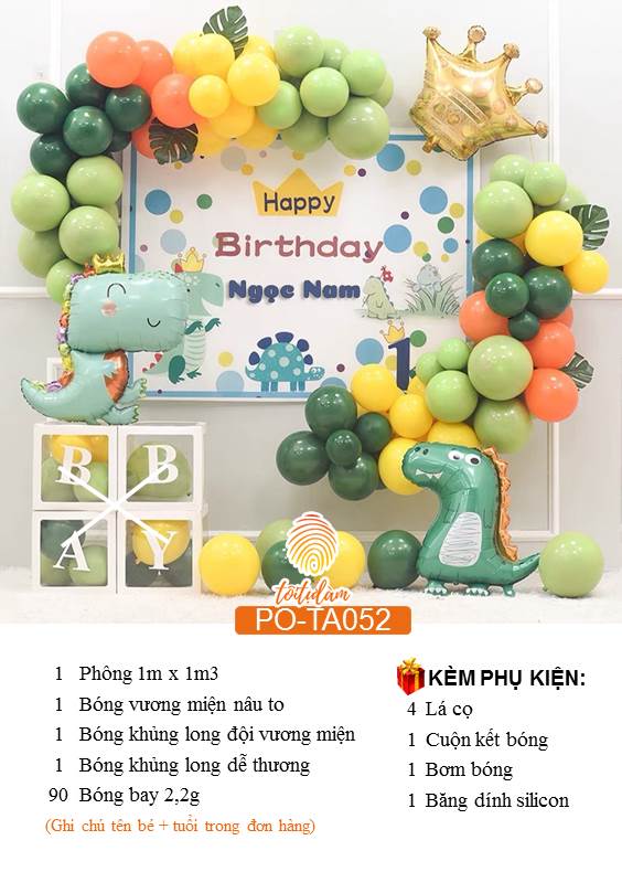 Với phông sinh nhật chủ đề khủng long đáng yêu này, Tôi tự làm mong muốn được cùng ba mẹ tạo nên mỗi khoảnh khắc đáng nhớ trong cuộc đời của con !