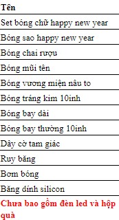 Set bóng năm mới 100% thành phần như mô tả, đảm bảo sản phẩm y hệt như hình chụp