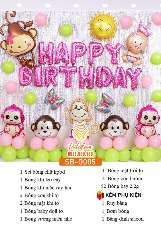 Với set bóng sinh nhật Chủ đề khỉ con đáng yêu này, Tôi tự làm mong muốn được cùng ba mẹ tạo nên mỗi khoảnh khắc đáng nhớ trong cuộc đời của con !