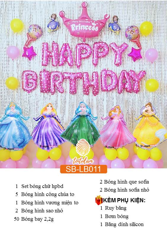 SET BÓNG TRANG TRÍ SINH NHẬT BÉ GÁI CHỦ ĐỀ CÔNG CHÚA SB-LB011