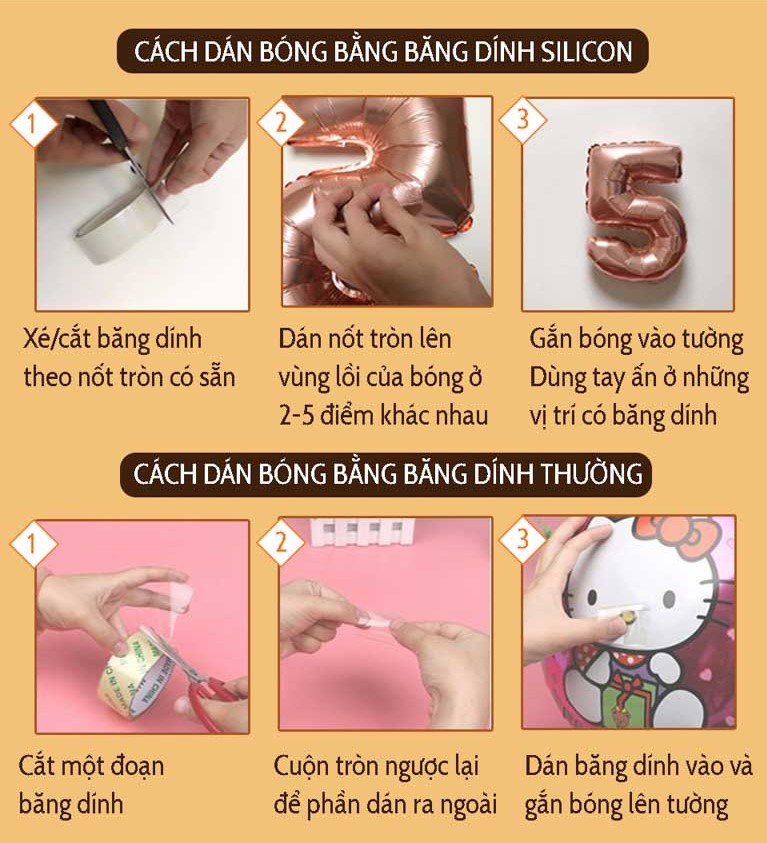 ▶️ CÁCH DÁN BĂNG DÍNH: Khách iu yên tâm là băng dính chuyên dụng silicon của Shop đã có từng nốt tròn nhỏ. Hãy lựa chọn những vị trí lồi của quả bóng, chỗ mà bóng dễ dàng tiếp xúc với mặt tường để dán nốt tròn, sau đó khách iu cẩn thận dính lên tường để trang trí thật xinh xắn nhé.