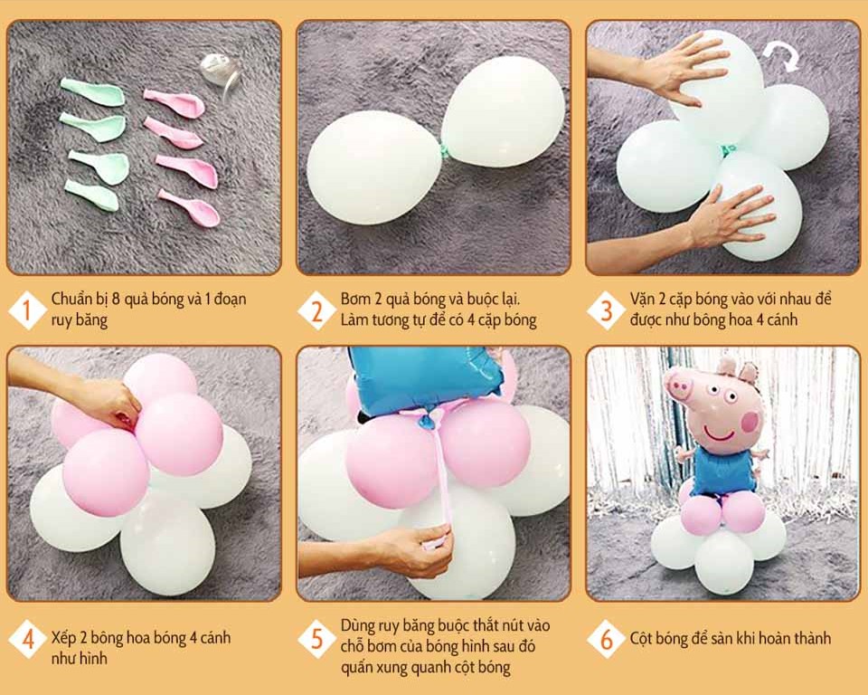*** Mách nhỏ khách iu: Nếu khách iu mới làm lần đầu chưa có kinh nghiệm thì nên bơm những quả bóng ít quan trọng trước cho quen tay, nếu nhỡ may có lỗi hỏng thì không bị ảnh hưởng gì đến bố cục chính của phông sinh nhật trang trí ạ.