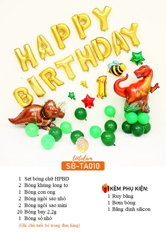 SET BÓNG TRANG TRÍ SINH NHẬT BÉ TRAI CHỦ ĐỀ KHỦNG LONG SB-TA010