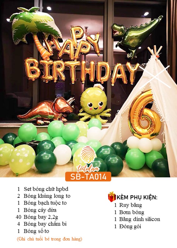 SET BÓNG TRANG TRÍ SINH NHẬT BÉ TRAI CHỦ ĐỀ KHỦNG LONG SB-TA014