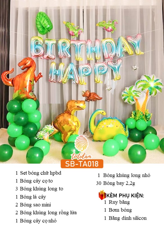 SET BÓNG TRANG TRÍ SINH NHẬT BÉ TRAI CHỦ ĐỀ KHỦNG LONG SB-TA018