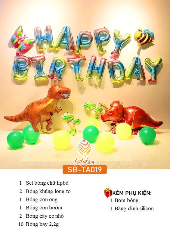 SET BÓNG TRANG TRÍ SINH NHẬT BÉ TRAI CHỦ ĐỀ KHỦNG LONG SB-TA019