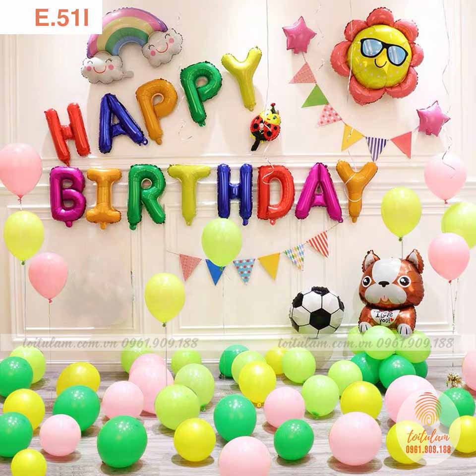 SET BÓNG SINH NHẬT E.51I là một gợi ý tuyệt vời cho bữa tiệc sinh nhật của bé thêm đặc sắc với nhiều tông màu bắt mắt, đặc biệt phù hợp trang trí tiệc sinh nhật cho bé yêu thích