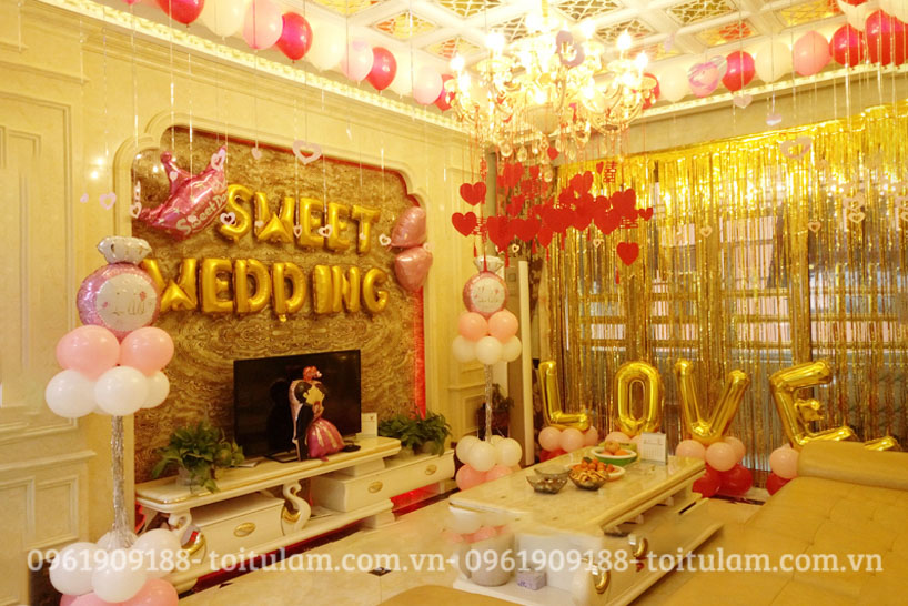 Thay vì mất 2-3 TRIỆU đồng THUÊ người khác trang trí phòng cưới, bạn chỉ cần bỏ ra 90K-300K thêm 1 chút khéo tay là đã có 1 không gian phòng cưới vô cùng LUNG LINH.