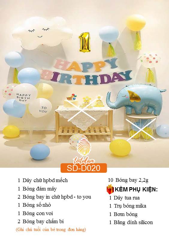 SET BÓNG TRANG TRÍ SINH NHẬT PHONG CÁCH HÀN QUỐC SD-D020
